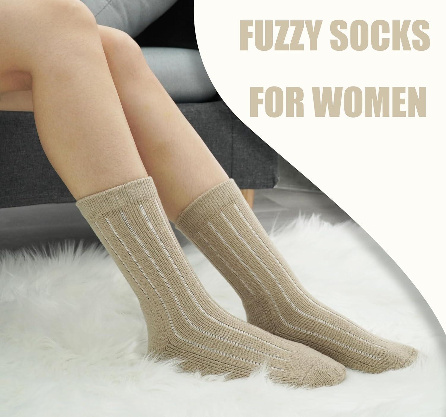 BomKinta Crew Boot Socks for Women – Cozy Warm Winter Socks – Comfy Soft Christmas Sleeping Sock Size 5-10(3 Pairs-beige Beige Beige)