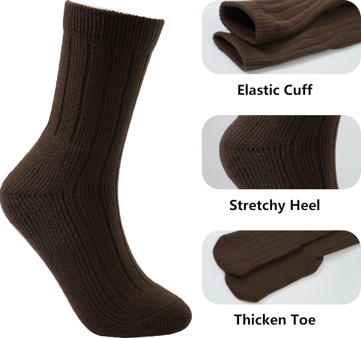 BomKinta Crew Boot Socks for Women – Cozy Warm Winter Socks – Comfy Soft Christmas Sleeping Sock Size 5-10(3 Pairs-white Khaki Brown)