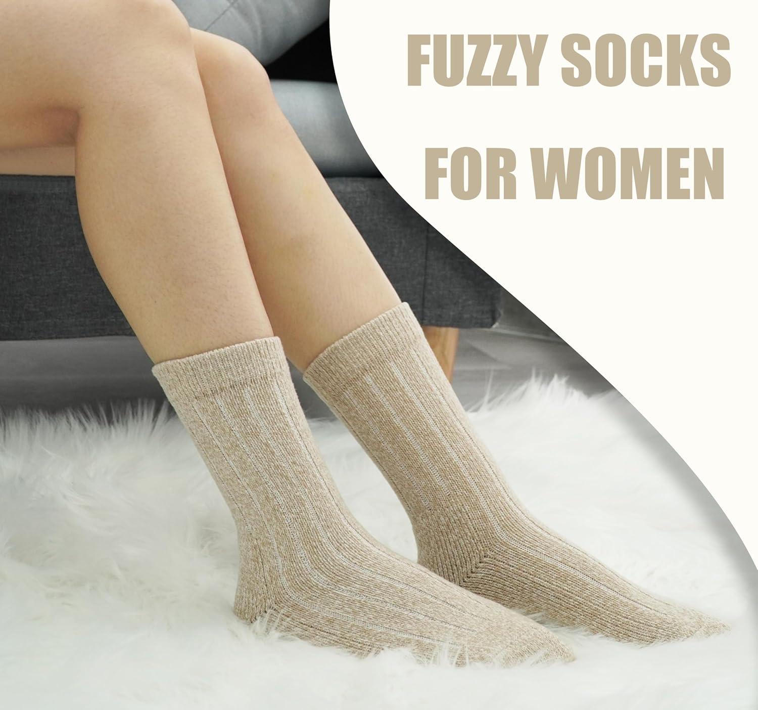 BomKinta Crew Boot Socks for Women – Cozy Warm Winter Socks – Comfy Soft Christmas Sleeping Sock Size 5-10(5 Pairs-2 Black 2 Beige Grey)