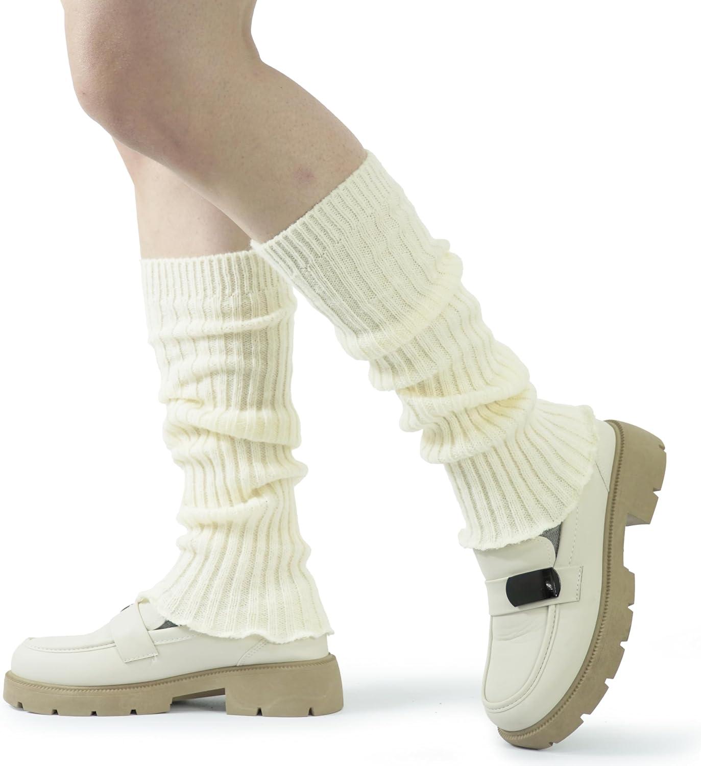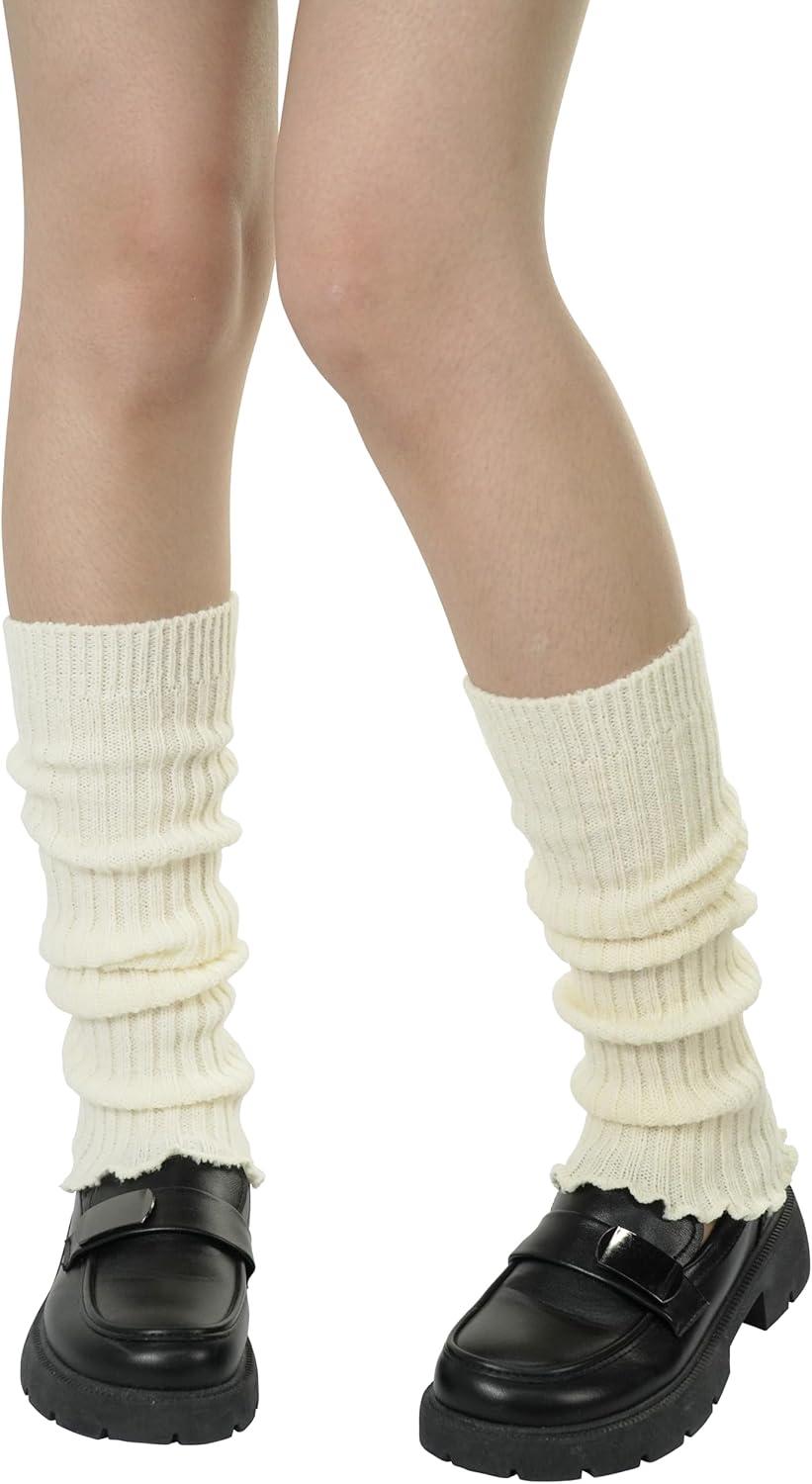 BomKinta Leg Warmers for Women – Soft Fashion Knit Calf Accessories – Cute 80s Ruffle Leg Sleeves for Party Yoga(1 Pair – Beige)