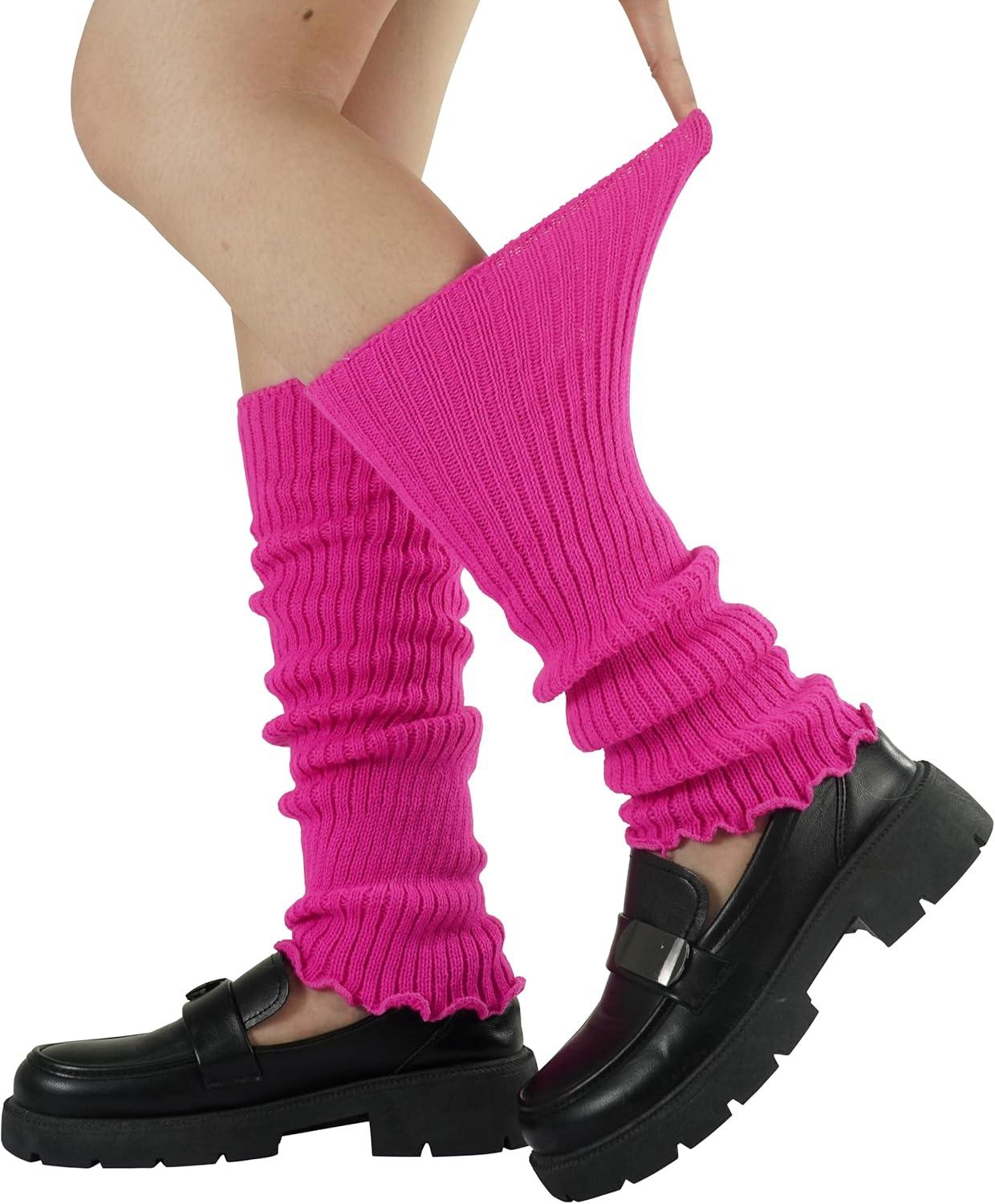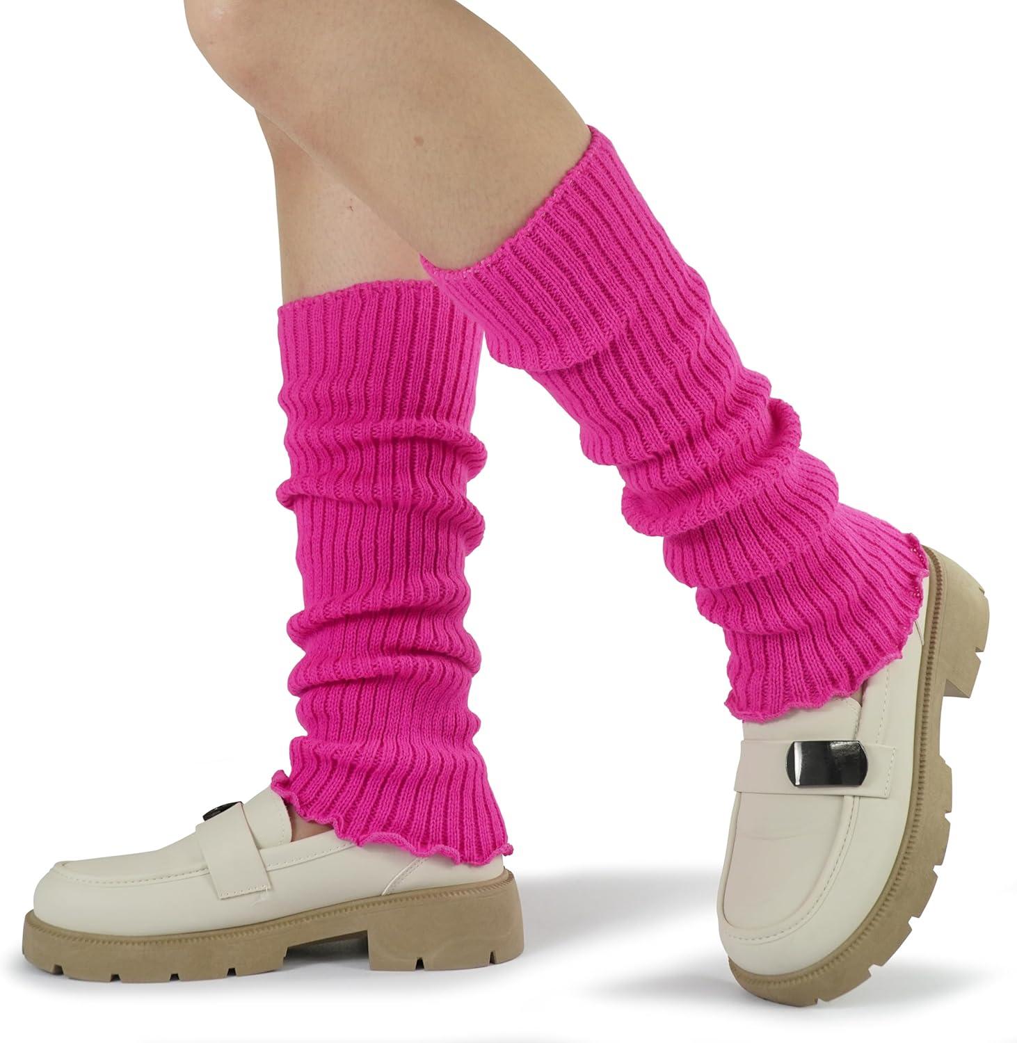 BomKinta Leg Warmers for Women – Soft Fashion Knit Calf Accessories – Cute 80s Ruffle Leg Sleeves for Party Yoga(1 Pair – Rose)